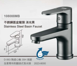 / 108088MB-不鏽鋼面盆龍頭 消光黑