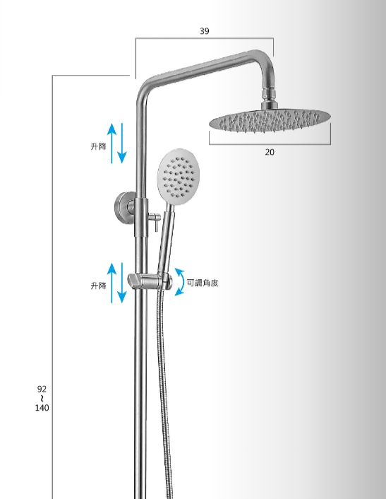 68019ST圓形不鏽鋼拉絲升降大花灑