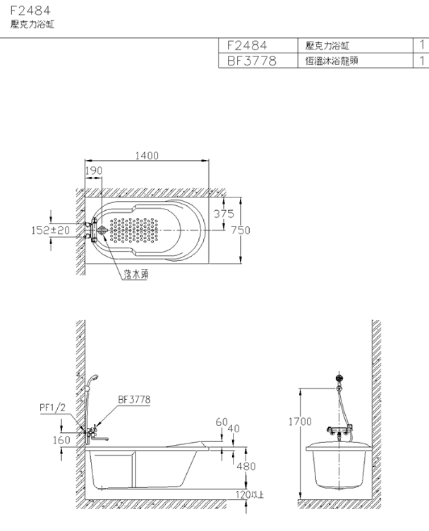 / F2484-3778壓克力浴缸(含龍頭)