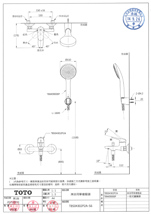 備 註 蓮蓬頭取得省水標章