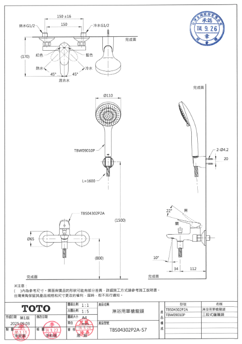 TBS04302P2A-S7 淋浴用單槍龍頭 數量